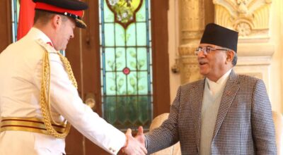 काठमाडौँ, १६ माघ । प्रधानमन्त्री पुष्पकमल दाहाल ‘प्रचण्ड’सँग बेलायती सेनाका सेनाध्यक्ष जनरल सर प्याट्रिक स्यान्डर्सले शिष्टाचार भेट गरेका छन् । प्रधानमन्त्री तथा मन्त्रिपरिषद्को कार्यालयमा भएको उक्त भेटमा नेपाल-बेलायत सम्बन्धका साथै