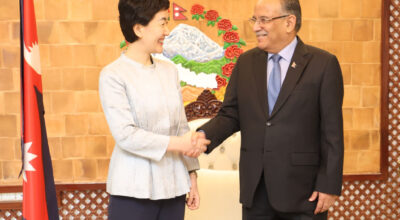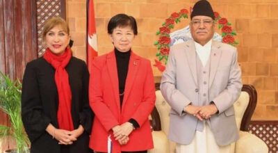 काठमाडौँ, १३ माघ । प्रधानमन्त्री पुष्पकमल दाहाल ‘प्रचण्ड’सँग चिनियाँ कम्युनिष्ट पार्टीको अन्तर्राष्ट्रिय विभागकी उपमन्त्री सुन हायानले शिष्टाचार भेट गरेकी छन् । प्रधानमन्त्री निवास बालुवाटारमा आज भएको भेटमा उनीहरुबीच द्विपक्षीय हित