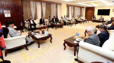 काठमाडौँ, २२ पुस । राष्ट्रियसभा सदस्य निर्वाचनको १९ सिटमा सत्ता गठबन्धनमा बाँडफाँट भएको छ । आइतबार प्रधानमन्त्रीको सरकारी निवास बालुवाटारमा बसेको सत्ता गठबन्धनको बैठकले सिट बाँडफाँट टुङ्ग्याएको हो । बैठकमा
