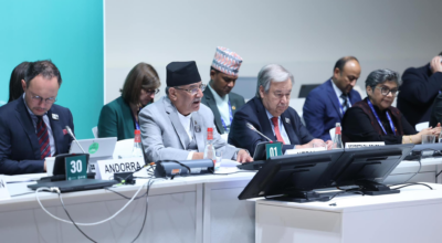 काठमाडौँ, ३० मङ्सिर । जलवायु परिवर्तनसम्बन्धी संयुक्त राष्ट्रसङ्घीय सम्मेलन (कोप २८) मा पहिलोपटक जलवायुले हिमालमा पारेका असर कोप–२८निर्णयका दस्तावेजमा समावेश गरिएका छन् । संयुक्त अरब इमिरेट्सको दुबईमा यही मङ्सिर १४