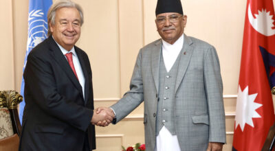 काठमाडौँ, ११ कात्तिक । संयुक्त राष्ट्रसङ्घका महासचिव एन्टोनियो गुटेरेस नेपालको चार दिने भ्रमणका क्रममा यही कात्तिक १२ गते आइतवार नेपाल आउँदै छन् । प्रधानमन्त्री पुष्पकमल दाहाल ‘प्रचण्ड’ को मैत्रीमूर्ण निमन्त्रणामा
