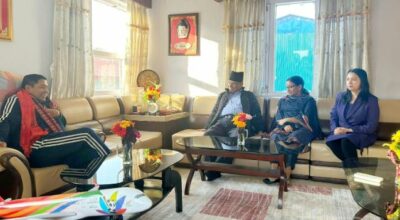 काठमाडौँ, ८ कात्तिक । प्रधानमन्त्री पुष्पकमल दाहाल ‘प्रचण्ड’ले उपप्रधानमन्त्री एवं गृहमन्त्री नारायणकाजी श्रेष्ठको स्वास्थ्यवस्थाबारे जानकारी लिएका छन् । पुल्चोकस्थित मन्त्री निवासमा पुगेर प्रधानमन्त्री दाहालले आज उपप्रधानमन्त्री श्रेष्ठको स्वास्थ्य लाभको कामना