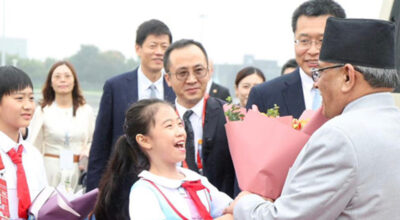 काठमाडौँ, ९ असोज । प्रधानमन्त्री पुष्पकमल दाहाल प्रचण्डको चीन भ्रमणबाट नेपालले आर्थिक र राजनीतिक रूपमा ठुलै लाभ लिने र दीर्घकालीन महत्त्वका सम्झौता हुने अपेक्षा गरिएको भए पनि भ्रमण औपचारिकतामा मात्र