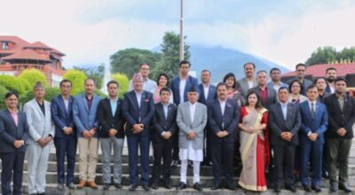काठमाडौँ, ७ भाद्र । राष्ट्रपति रामचन्द्र पौडेलले अर्थतन्त्रमा निजी क्षेत्रको सहभागिता उत्साहजनकरूपमा भएमात्र देशको आर्थिक विकास सम्भव हुने धारणा व्यक्त गरेका छन् । नेपाल उद्योग वाणिज्य महासङ्घको कार्यकारिणी समितिसँगको भेटमा