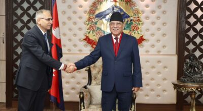 काठमाडौँ, १ फागुन । प्रधानमन्त्री पुष्पकमल दाहाल प्रचण्डसँग भारतीय विदेश सचिव विनयमोहन क्वात्राले भेटवार्ता गरेका छन् । प्रधानमन्त्रीको सरकारी निवास बालुवाटारमा सोमवार भएको भेटमा द्विपक्षीय सहयोगका विविध विषयमा छलफल भएको