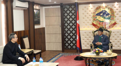 काठमाडौँ, २ माघ । प्रधानमन्त्री पुष्पकमल दाहाल ‘प्रचण्ड’सँग नेपालका लागि नवनियुक्त चिनियाँ राजदूत छेन सोङले आज शिष्टाचार भेट गरेका छन् । प्रधानमन्त्री निवास बालुवाटारमा भएको सो भेटमा प्रधानमन्त्रीलाई राजदूत सोङले