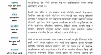 काठमाडौँ, २७ मंसिर । नेकपा (एमाले)ले समानुपातिक सांसदको सूची सच्याएको छ । मंगलबार एमालेले समानुपातिक सांसदको सूची सच्याएर निर्वाचन आयोगमा बुझाएको हो । एमालेले सोमबार आयोगलाई पत्र पठाउँदै आफूले गरेको