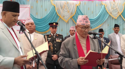 दाङ, ९ साउन । लुम्बिनी प्रदेशमा नवनियुक्त मुख्यमन्त्री चेतनारायण आचार्य र एमाले–कांग्रेसका ८ बिना विभागीय मन्त्रीहरूले पद तथा गोपनीयताको शपथ लिनुभएको छ । बुटवलस्थित प्रदेश प्रमुखको कार्यालयमा प्रदेश प्रमुख अमिक