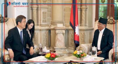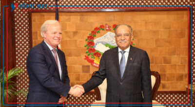 काठमाडौं, २ असार । प्रधानमन्त्री पुष्पकमल दाहाल ‘प्रचण्ड’सँग चिनियाँ जनराजनीतिक परामर्शदातृ सम्मेलन ९सिपिपिसिसी०का उपाध्यक्ष बार्टरले आज शिष्टाचार भेट गर्नुभएको छ । सिंहदरबारस्थित प्रधानमन्त्री कार्यालयमा भएको भेटमा उहाँहरूबीच द्विपक्षीय सम्बन्ध, आपसी