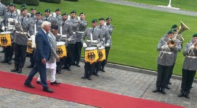 काठमाडौँ, ३ असार । जर्मनको औपचारिक भ्रमणमा रहनुभएका राष्ट्रपति रामचन्द्र पौडेललाई सोमबार बर्लिनमा जर्मन सरकारले गार्ड अफ अनरको सम्मान दिएको छ । राष्ट्रपति पौडेल र जर्मनीका राष्ट्रपतिबीच द्विपक्षीय भेटवार्ता हुनुअघि