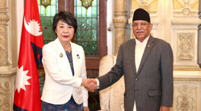 काठमाडौँ, २३ वैशाख । प्रधानमन्त्री पुष्पकमल दाहाल ‘प्रचण्ड’ सँग नेपालको भ्रमणमा रहनुभएका जापानी विदेशमन्त्री खामिखावा योकोले शिष्टाचार भेट गर्नुभएको छ । प्रधानमन्त्री कार्यालय सिंहदरबारमा आज भएको भेटमा उहाँहरूबीच द्विपक्षीय चासो,