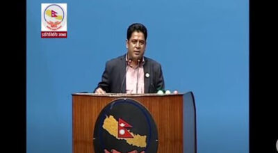 काठमाडौँ, १९ चैत । उद्योग, वाणिज्य तथा आपूर्ति मन्त्री दामोदर भण्डारीले निराशालाई चिर्दै नागरिकमा आशा जगाउने सरकारको उद्देश्य भएको बताएका छन् । प्रतिनिधिसभाको आजको बैठकमा ‘विद्युतीय व्यापार विधेयक, २०८० माथि