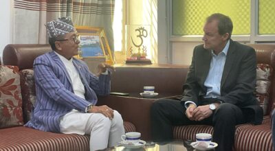 काठमाडौं, १४ असार । राप्रपा अध्यक्ष राजेन्द्र लिङ्देनसँग बेलायतका राजदूत रब फेनले शिष्टाचार भेट गर्नुभएको छ । आज पार्टी केन्द्रीय कार्यालय धुम्बाराहीमा पुगेर राजदूत फेनले अध्यक्ष लिङ्देनसँग भेट गर्नुभएको छ