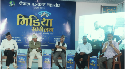 झापा, ५ जेठ । नेपाल पत्रकार महासङ्घ झापा शाखाको आयोजनामा कनकाई नगरपालिकाको सुरुङ्गामा ‘मिडिया सम्मेलन’ सुरु भएको छ । कोशी प्रदेशका आन्तरिक मामिला तथा योजनामन्त्री राम रानाले सम्मेलनको उद्घाटन गर्नुभयो
