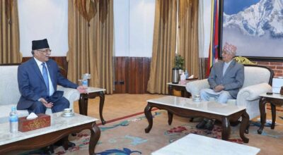 काठमाडौँ, ३० वैशाख । राष्ट्रपति रामचन्द्र पौडेलसँग प्रधानमन्त्री पुष्पकमल दाहाल ‘प्रचण्ड’ले भेट गर्नुभएको छ । आइतबार दिउँसो राष्ट्रपति भवन शीतल निवासमा राष्ट्रपति पौडेल र प्रधानमन्त्री प्रचण्डका बिचमा भेटघाट भएको हो