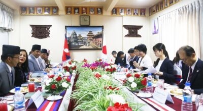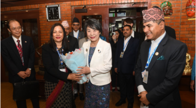 काठमाडौँ, २३ वैशाख । उपप्रधानमन्त्री तथा परराष्ट्रमन्त्री नारायणकाजी श्रेष्ठ र नेपाल भ्रमणमा रहनुभएका जापानका विदेशमन्त्री खामिखावा योकोबीच भेटघाटवार्ता सम्पन्न भएको छ । परराष्ट्रमन्त्रीस्तरीय प्रतिनिधिमण्डलबीच आज मन्त्रालयमा भएको वार्तामा द्विपक्षीयसम्बन्ध र
