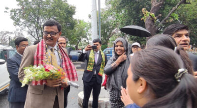 झापा, १० चैत । बङ्गलादेशका पारवहनमन्त्री खालिद महम्मद चौधरी पूर्वीनाका काँकडभिट्टा हुँदै आज नेपाल भ्रमणमा आएका छन् । मेची भन्सार कार्यालयका प्रमुख रामप्रसाद रेग्मीका अनुसार काठमाडौँमा आजदेखि आयोजना हुने नेपाल