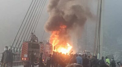 कैलाली, २८ फागुन । सुदूरपश्चिम प्रदेशको प्रवेशद्वार कर्णाली चिसापानी पुलमा गुडिरहेको ट्रकमा एक्कासि आगलागी हुँदा कर्णाली नदीको पुलमा आगो सल्किएको छ । आज साँझ करिब ५ बजे लाइटर बोकेको ट्रकमा