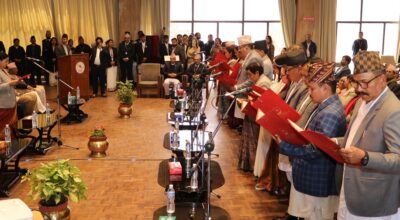 काठमाडौँ, २१ फागुन । राष्ट्रियसभाका नवनिर्वाचित १९ सदस्यले आज पद तथा गोपनीयताको सपथ लिएका छन् । नयाँ वानेश्वरस्थित संसद भवनमा सङ्घीय संसद सचिवालयद्वारा आज आयोजित समारोहमा सभाका उपाध्यक्ष उर्मीला अर्यालले