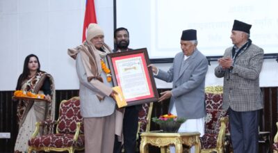 काठमाडौँ, १३ फागुन । राष्ट्रपति रामचन्द्र पौडेलले ‘महेन्द्रनारायण निधि राष्ट्रिय पुरस्कार तथा सम्मान-२०८०’ पूर्वराष्ट्रपति डा.रामवरण यादवलाई प्रदान गरेका छन् । वर्तमान संविधान निर्माणक्रममा समन्वयकारी भूमिका निर्वाह गरेर संविधानसभाबाट जनताले बनाएको