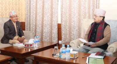 काठमाडौँ, २१ माघ । प्रमुख निर्वाचन आयुक्त दिनेशकुमार थपलियाले रिक्त रहेका विभिन्न २५ पदमा हुने उपनिर्वाचनका सम्बन्धमा उपप्रधानमन्त्री एवम् रक्षामन्त्री पूर्णबहादुर खड्कासँग छलफल गरेका छन् । प्रमुख निर्वाचन आयुक्त थपलियाले