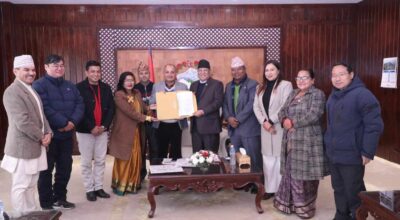 काठमाडौँ, २३ पुस । रेलवे प्रभावित तथा मुआब्जा समन्वय समिति कोशी प्रदेशले प्रधानमन्त्री पुष्पकमल दाहाल ‘प्रचण्ड’लाई भेटेर लिखित रूपमा तीनबुँदे माग राखेको छ । समिति महासचिव रञ्जित प्रसाईंका अनुसार सोमबार