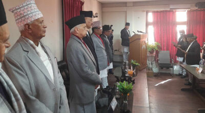 काठमाडौँ, २३ पुस । उच्च अदालतका नवनियुक्त ३९ न्यायाधीशले पद तथा गोपनीयताको शपथ लिएका छन् । आज पाटन उच्च अदालतमा आयोजित कार्यक्रममा प्रधानन्यायाधीश विश्वम्भरप्रसाद श्रेष्ठको उपस्थितिमा उच्च अदालतका मुख्य न्यायाधीशले