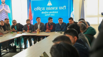 काठमाडौं, ४ माघ । राष्ट्रिय स्वतन्त्र पार्टी (रास्वपा) ले प्रतिनिधिसभा सदस्य निर्वाचनका लागि प्रत्यक्षतर्फका उम्मेदवार टुंग्याउन आज केन्द्रीय समिति बैठक बोलाएको छ। प्रवक्ता मनीष झाका अनुसार बैठक दिउँसो २ बजे