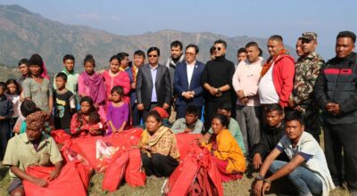 चितवन, २८ कात्तिक । संस्कृति, पर्यटन तथा नागरिक उड्डयनमन्त्री सुदन किराती चेपाङ समुदायलाई न्यानो कपडा (ब्ल्याङकेट) वितरण गरेका छन् । इच्छाकामना गाउँपालिका-१ सप्रेनीका १६ चेपाङ परिवारलाई उनले दुई/दुई थान ब्ल्याङकेट