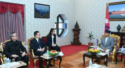 काठमाडौँ, २३ कात्तिक । राष्ट्रपति रामचन्द्र पौडेलसँग जनवादी गणतन्त्र चीनको स्वशासित क्षेत्र तिब्बतका सचिव वाङ जुनझेङ नेतृत्वको प्रतिनिधिमण्डलले शिष्टाचार भेट गरेको छ । राष्ट्रपति भवनमा आज भएको भेटमा दुई देशबीचको