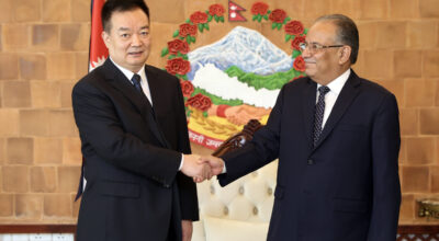 काठमाडौँ, २३ कात्तिक । प्रधानमन्त्री पुष्पकमल दाहाल ‘प्रचण्ड’ सँग चिनियाँ कम्युनिष्ट पार्टी तिब्बत स्वशासित क्षेत्रका सचिव वाङ जुनझेङ नेतृत्वको प्रतिनिधिमण्डलले शिष्टाचार भेटवार्ता गरेको छ । प्रधानमन्त्री निवास बालुवाटारमा आज भएको