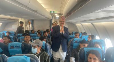 काठमाडौँ, २५ असोज । आतङ्कवादी समूह हमासले गत शनिबार इजरायलमा गरेको आक्रमणपछि त्यहाँ अलपत्र परेका नेपालीलाई स्वदेश ल्याउन आज बिहान त्यसतर्फ गएको नेपाल एयरलाइन्सको विमान आजै राति ९ बजे फर्किने