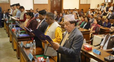 काठमाडौँ, ११ भदौ । प्रतिनिधिसभाको अन्तर्गतको संसदीय समितिका नवनिर्वाचित सभापतिहरुले पद तथा गोपनियताको शपथ लिएका छन् । कृषि समितिको हलमा सोमबार साँझ आयोजित विशेष कार्यक्रमबीच नर्वनिर्वाचित १० वटै समितिका सभापतिहरुले
