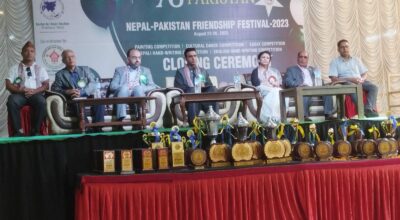 काठमाडौँ, १० भदौ । पाकिस्तानको ७६औँ स्वतन्त्रता दिवसका अवसरमा नेपालस्थित पाकिस्तानी राजदूतावासको सहयोगमा एसियाली अध्ययन केन्द्र र महाकाली नाट्य परिषदद्वारा संयुक्तरूपमा भक्तपुरमा नेपालमैत्री महोत्सवको आयोजना गरिएको छ । उक्त महोत्सवमा