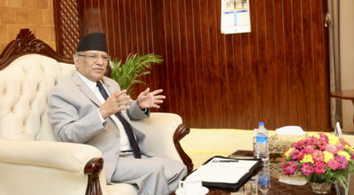 काठमाडौँ, ३ भाद्र । सङ्घीय संसद्मा देखा परेको गतिरोधलगायतका विषयमा छलफल गर्न प्रधानमन्त्री पुष्पकमल दाहाल ‘प्रचण्ड’ले राष्ट्रिय मान्यता प्राप्त दलका शीर्ष नेताहरुको बैठक आह्वान गरेका छन् । प्रधानमन्त्री तथा मन्त्रिपरिषद्