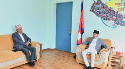 काठमाडौँ, ३० साउन । नेकपा एमालेका अध्यक्ष केपी शर्मा ओली र पार्टीप्रति असन्तुष्ट रहेका नेता भीम रावलको भेटवार्ता भएको छ । अध्यक्ष ओलीको सचिवालय बालकोटले रावलसँगको तस्विर राख्दै दुई जनाको