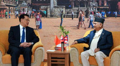 काठमाडौँ, ९ साउन । नेपाल भ्रमणमा रहेका चिनियाँ कम्युनिस्ट पार्टीका पोलिटब्युरो सदस्य युआन च्या म्युनले नेकपा (एमाले) का अध्यक्ष केपी शर्मा ओलीसँग भेटवार्ता गरेका छन् । मंगलबार बिहान उनीहरूबीच एमाले