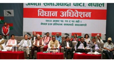 काठमाडौँ, १० असार । जनता समाजवादी पार्टी (जसपा) नेपालको विधान अधिवेशन आजदेखि राजधानीमा सुरु भएको छ । कमलादीस्थित नेपाल प्रज्ञा प्रतिष्ठानको सभाहलमा आज पार्टी अध्यक्ष उपेन्द्र यादव र सङ्घीय परिषद