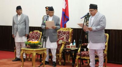 काठमाडौँ, १ असार । राष्ट्रपति रामचन्द्र पौडेलसमक्ष सर्वोच्च अदालतका नवनियुक्त प्रधानन्यायाधीश हरिकृष्ण कार्कीले पद तथा गोपनीयताको सपथ लिएका छन् । राष्ट्रपति भवनमा आज आयोजित समारोहमा उनले सपथ लिएका हुन् ।