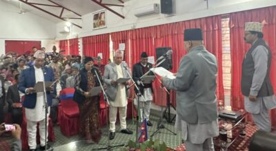 सुर्खेत, ७ वैशाख । कर्णाली प्रदेशका नवनियुक्त चार मन्त्रीले पद तथा गोपनीयताको शपथ लिएका छन् । प्रदेश प्रमुख तिलक परियारले उनीहरूलाई शपथ खुवाएका हुन् । बुधबार हुने भनिएको शपथ रोकिएको