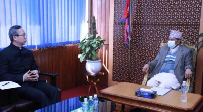 काठमाडौँ, १५ माघ । उपप्रधानमन्त्री एवं भौतिक पूर्वाधार तथा यातायातमन्त्री नारायणकाजी श्रेष्ठसँग नेपालका लागि चिनियाँ राजदूत चेन सोङले शिष्टाचार भेटवार्ता गरेका छन् । भौतिक पूर्वाधार तथा यातायात मन्त्रालयमा आज भएको