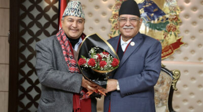 काठमाडौँ, २८ पुस । प्रधानमन्त्री पुष्पकमल दाहाल ‘प्रचण्ड’ र बागमती प्रदेशका मुख्यमन्त्री शालिकराम जम्मकट्टेलबीच भेट भएको छ । जम्मकट्टेल प्रधानमन्त्रीलाई भेट्न बिहीबार बिहान उनको सरकारी निवास बालुवाटार पुगेका हुन् ।