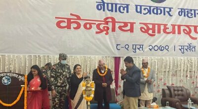 सुर्खेत, ८ पुस । नेपाल पत्रकार महासंघको केन्द्रीय साधारणसभा कर्णालीको राजधानी वीरेन्द्रनगरमा सुरु भएको छ । राष्ट्रपति विद्यादेवी भण्डारीले सभाको उद्घाटन गरेकी हुन् । उक्त कार्यक्रममा देशभरका ६ सय बढी