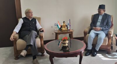 काठमाडौँ, २७ असोज । गृहमन्त्री बालकृष्ण खाँणसँग भारतीय राजदूत नविन श्रीवास्तवले भेटवार्ता गरेका छन् । बिहीबार दिउँसो गृह मन्त्रालयमा भएको भेटमा नेपाल-भारबिचको आपसी सम्बन्ध र सहयोग आदान-प्रदानबारे छलफल भएको गृहमन्त्रीको