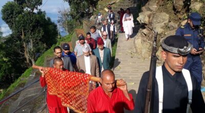 गोरखा, १६ असोज । गोरखकाली मन्दिरको दशैँघरबाट काठमाडौँको हनुमानढोकामा रहेको दशैँघरमा फूलपाती लगिएको छ । गोर्खामा विधिपूर्वक गएराति संंकलन गरिएको फूलपाती आज बिहान मोटरमा राखेर हनुमानढोका पठाइएको हो । गोरखकाली