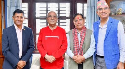 काठमाडौँ, २६ भदौ । सिट बाँडफाँटमा सहमति जुटाउन सत्ता गठबन्धनको बैठक आज पनि बस्दैछ । बैठक अहिले केहीबेरमा प्रधानमन्त्रीको सरकारी निवास बालुवाटारमा बस्नेछ । शनिबारको बैठकमा नै सहमति गर्ने भनिए