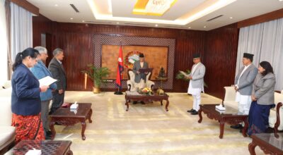 काठमाडौँ, २६ मंसिर । प्रधानमन्त्री केपी शर्मा ओलीसमक्ष राष्ट्रिय सूचना आयोगका नवनियुक्त प्रमुख आयुक्त डा सुरेशप्रसाद आचार्यले आज पद तथा गोपनीयताको सपथ लिनुभएको छ । प्रधानमन्त्री निवास, बालुवाटारमा आज आयोजित