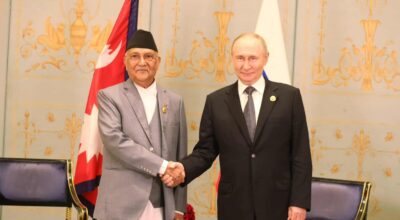 काठमाडौं, १७ भदौ । साङ्घाइ सहयोग संगठन (एससीओ)को शिखर सम्मेलनका लागि चीनको थियानचिनमा रहेका प्रधानमन्त्री केपी शर्मा ओली र रुसी महासङ्घका राष्ट्रपति भ्लादिमीर पुटिनबीच भेटवार्ता भएको छ । पाँच दिने