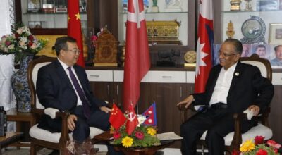 काठमाडौँ, २७ असार । नेकपा (माओवादी केन्द्र)का अध्यक्ष पुष्पकमल दाहाल ‘प्रचण्ड’सँग नेपाल भ्रमणमा रहेका चिनियाँ कम्युनिष्ट पार्टी (सिपिसी) का विदेश विभाग प्रमुख लिउ जियानचाओले शिष्टाचार भेटवार्ता गरेका छन् । चारदिने
