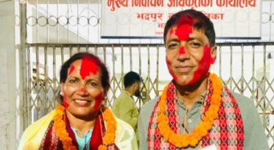 झापा, ५ जेष्ठ । भद्रपुर नगरपालिकाको नगर प्रमुखमा नेपाली कांग्रेसका उम्मेदवार गणेश पोखरेल निर्वाचित भएका छन् । उपप्रमुखमा भने राष्ट्रिय प्रजातन्त्र पार्टीकी राधा कार्की निर्वाचित भएकी छन् । भद्रपुरको नगरप्रमुख